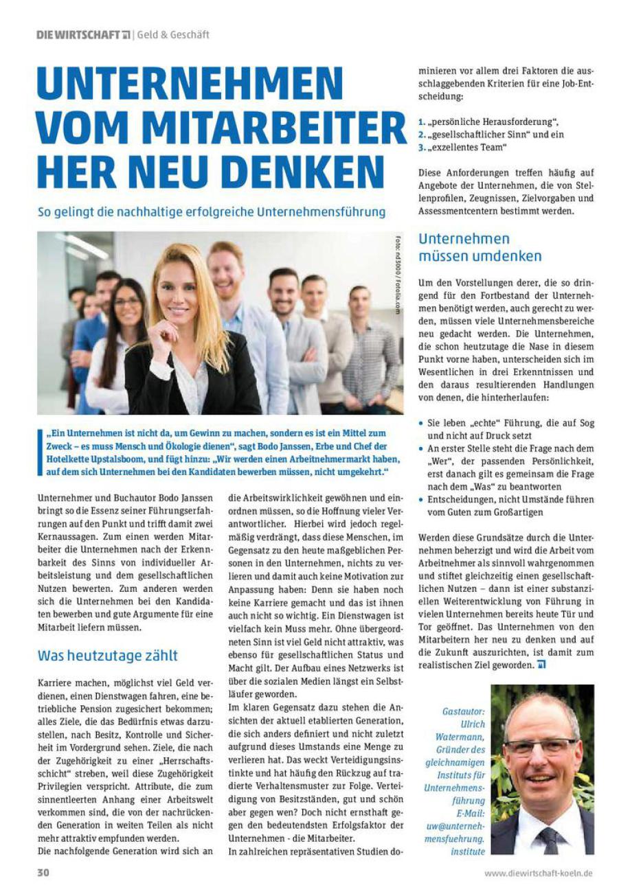 Auszug aus der Ausgabe 01.17 von DIE WIRTSCHAFT | Herausgeber: Weis Wirtschaftsmedien GmbH, Köln